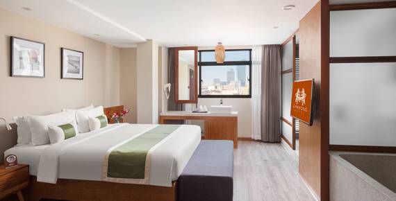 The Hotel is ideally placed only a few minutes from the city’s timeless landmarks such as the Independence Monument, the Royal Palace, Wat Phnom, Museums, the Old Central Market and the beautiful riverside precinct, where visitors enjoy evening strolls or idyllic boat trips on the river.