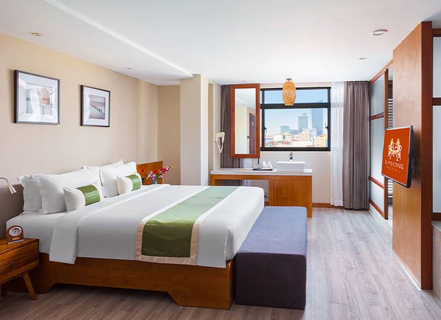 The Monivong Clover Hotel (formerly G Mekong Hotel) is an artistic urban sanctuary that embraces contemporary design, stylish comfort and metropolitan luxury. The Hotel is perfectly located on Monivong Boulevard in the heart of Phnom Penh, a city the French once called the ‘Paris of the East’ set on the banks of the mythical Mekong River.