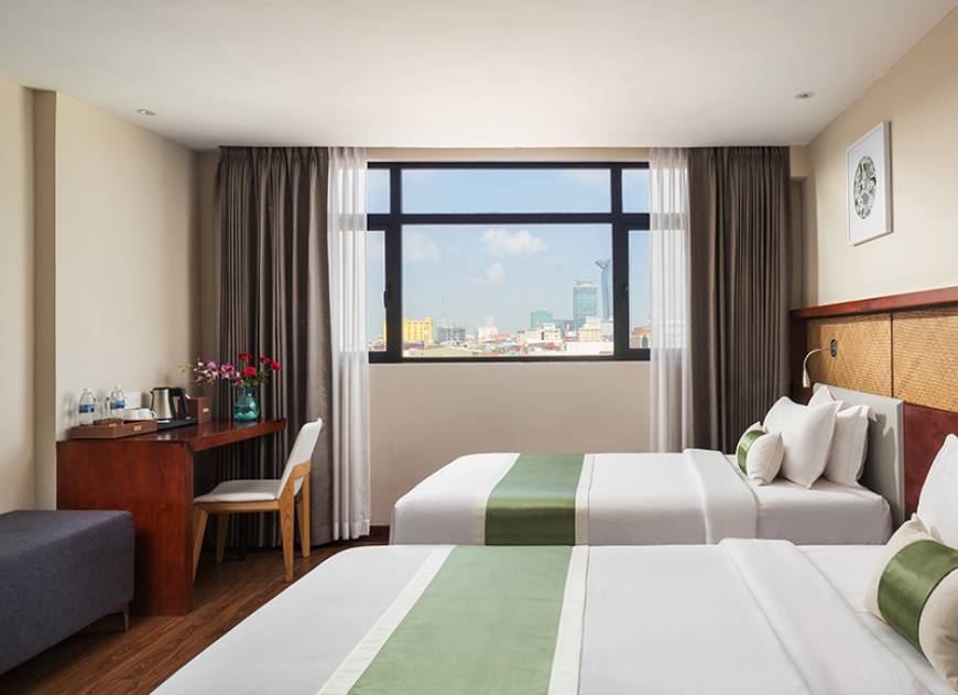 Offers a comfortable and practical stay in the heart of Phnom Penh, ideal for friends, colleagues, or family traveling together. The room features two cozy single beds, modern bathroom facilities, and thoughtfully designed interiors to ensure a relaxing stay.
